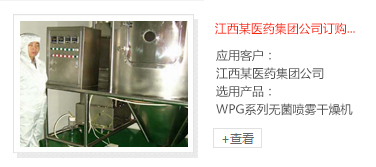 近年來(lái)我公司在食品、調(diào)味品、中藥、生物制品、化工和融溶造粒等行業(yè)中發(fā)展較快、根據(jù)生物的熱敏性、吸濕性、易結(jié)塊、易粘壁的特點(diǎn),進(jìn)行特殊設(shè)計(jì),取得了較高的知名度。公司常年備有各類試驗(yàn)樣機(jī)供客戶來(lái)人帶料進(jìn)行工藝試驗(yàn)。